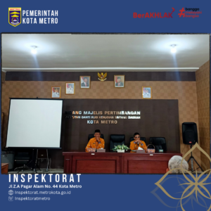Maksud dan tujuan dari rapat tersebut adalah dalam rangka meningkatkan kinerja Inspektorat Kota Metro terkait mandatori tugas, perubahan PKPT dan koordinasi antar bidang. Adapun kesimpulan hasil rapat yang di dapatkan adalah Sekretaris mengharapkan adanya koordinasi antar bidang terkait pelaksanaan tugas yang berkaitan dengan tupoksi masing-masing bidang seperti penilaian zona integritas yang di dalamnya memuat nilai SAKIP atas OPD yang ditetapkan MCP KPK, Audit Kinerja dan lain-lain. Setiap APIP harus memiliki pedoman atas tugas fungsional sebagai ujung tombak, jika sudah ada maka sebaiknya dilakukan revisi namun jika belum ada maka sebaiknya dibuat.  Nantinya Inspektorat akan memfasilitasi perwakilan bidang/forum untuk membahas panduan teknis pelaksanaan tugas yang ada.