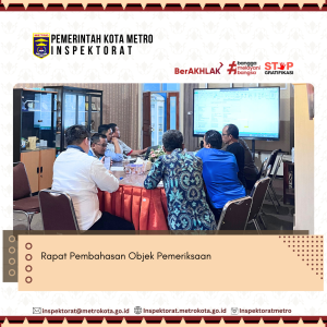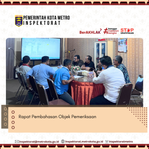 Pada hari ini, Jumat (19/9/2025) diadakan rapat pembahasan obrik oleh Inspektur Kota Metro bersama Sekretaris Inspektorat, para Irban dan Kasubbag. Rapat tersebut bertempat di Ruang OR Inspektorat Kota Metro.